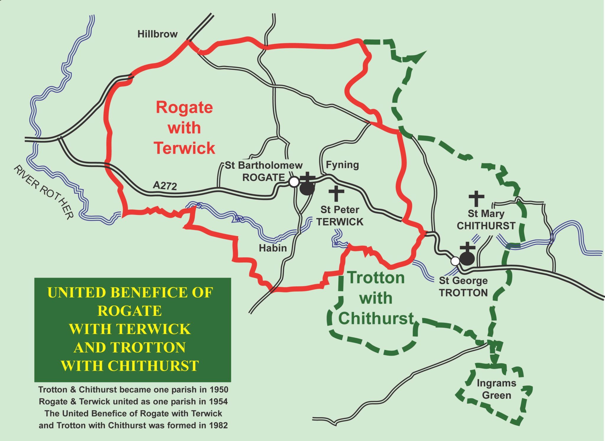 In 1952 the parishes of Rogate and Terwick were united as one benefice and in 1982 Trotton and Chithurst were added to make a united benefice of the four ancient churches.